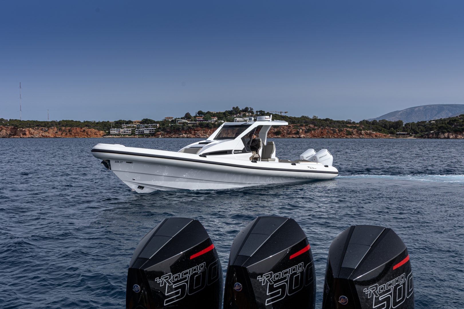 The newly developed hull with the addition of two steps combines speed and efficiency with top-of-the-class sea-keeping ability and comfort. With 2 x 400 Mercury V10 engines the boat reaches speeds of up to 58 knots, but for those who like the adrenaline rush the boat can be equipped also with 2 x 500 Mercury Racing for speeds that will exceed 65 knots.